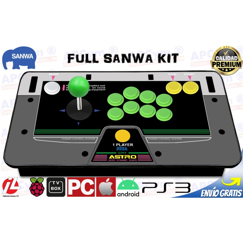 Sanwa Joystick Arcade Recreativa 1 Player para Raspberry Pi 3 y Pi 4 / PC / PS4 / PS3 / ANDROID